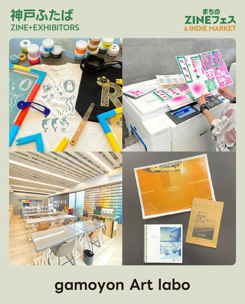 大阪・蒲生四丁目にある紙屋「gamoyon Art labo(ガモヨンアートラボ)」です。お店ではファンシーペーパーを中心とした紙の販売、リソグラフ/シルクスクリーン印刷作業ができるワークスペースの提供、印刷ワークショップなどを開催。今回のイベントではリソグラフ印刷を使ったZINEや紙雑貨を販売予定です◎