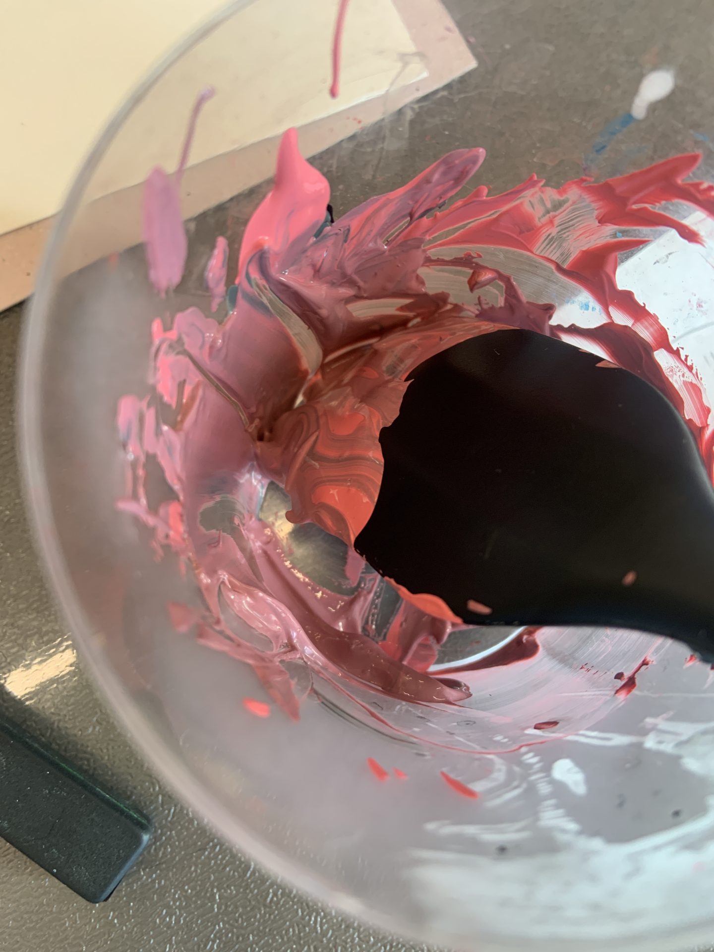 「くすみピンク」と「すす」を3:1の割合で混ぜ深みのあるピンク紫を目指しました。