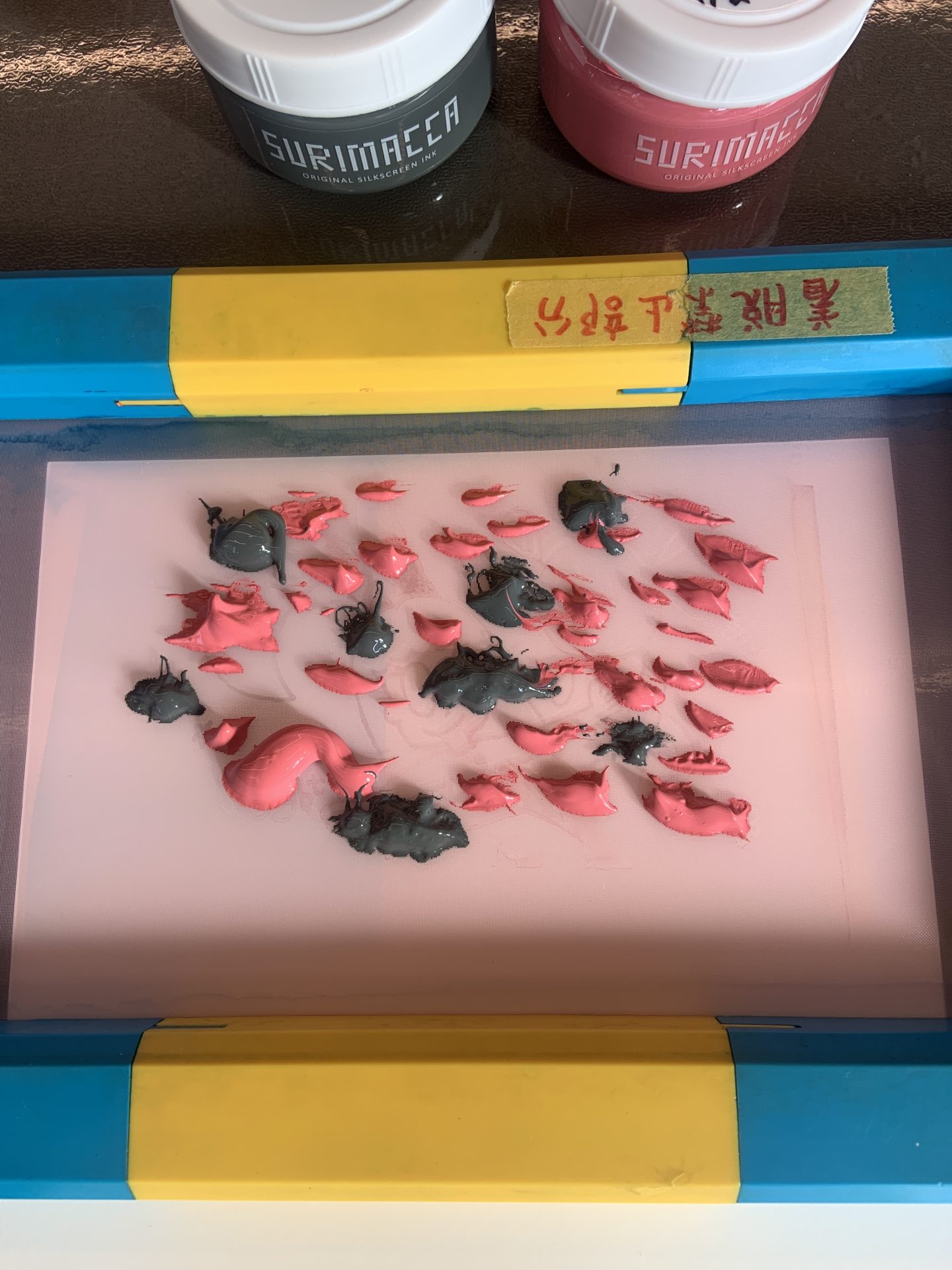 そして2回目の刷りではさらに混色が進み、「すす」の印象が強まり、全体がより落ち着いた、暗めの雰囲気へと変化しました。