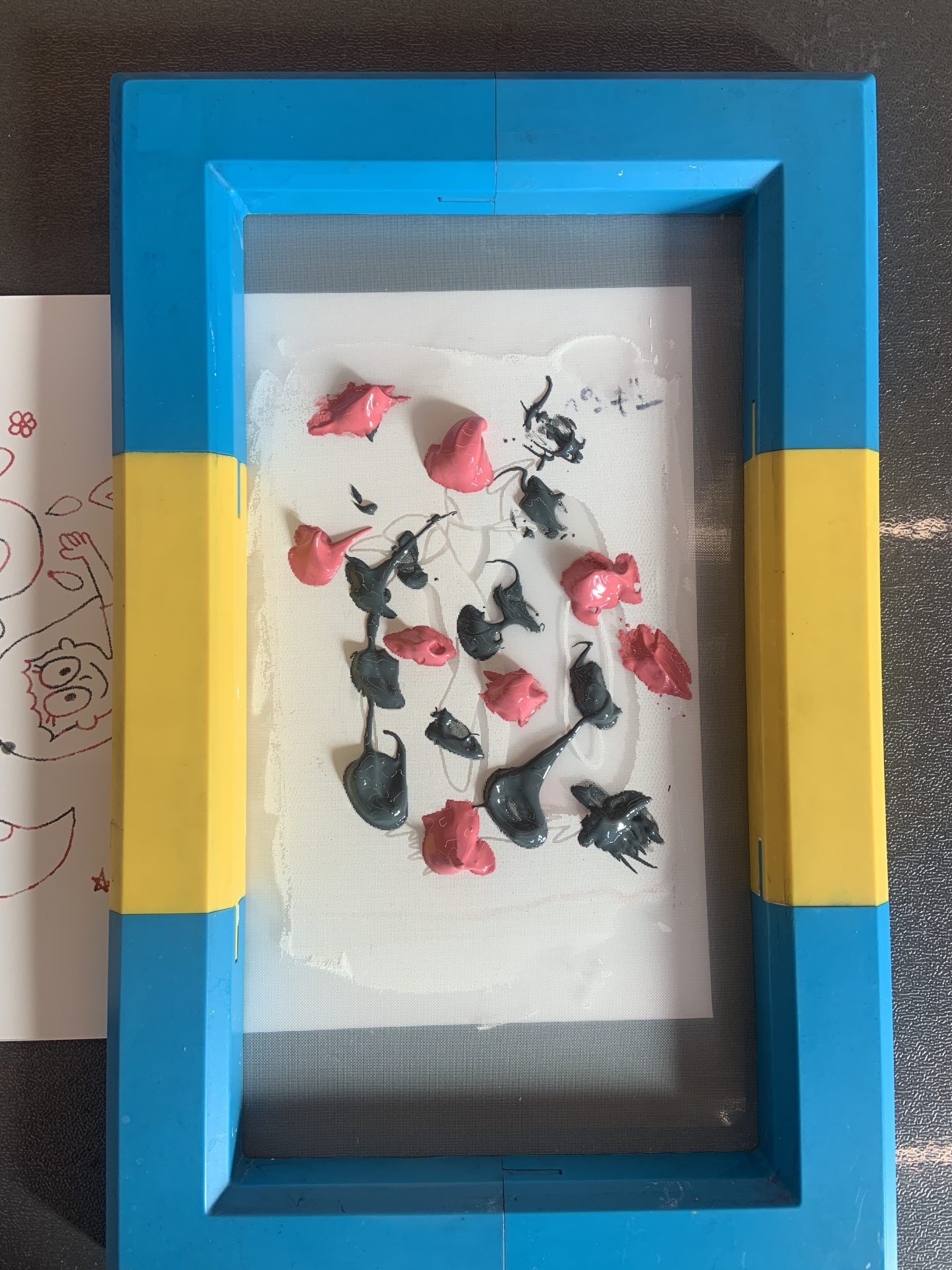 JAMLABを参考に、版の上に直接インクを置く「マーブル刷り」にも挑戦しました。