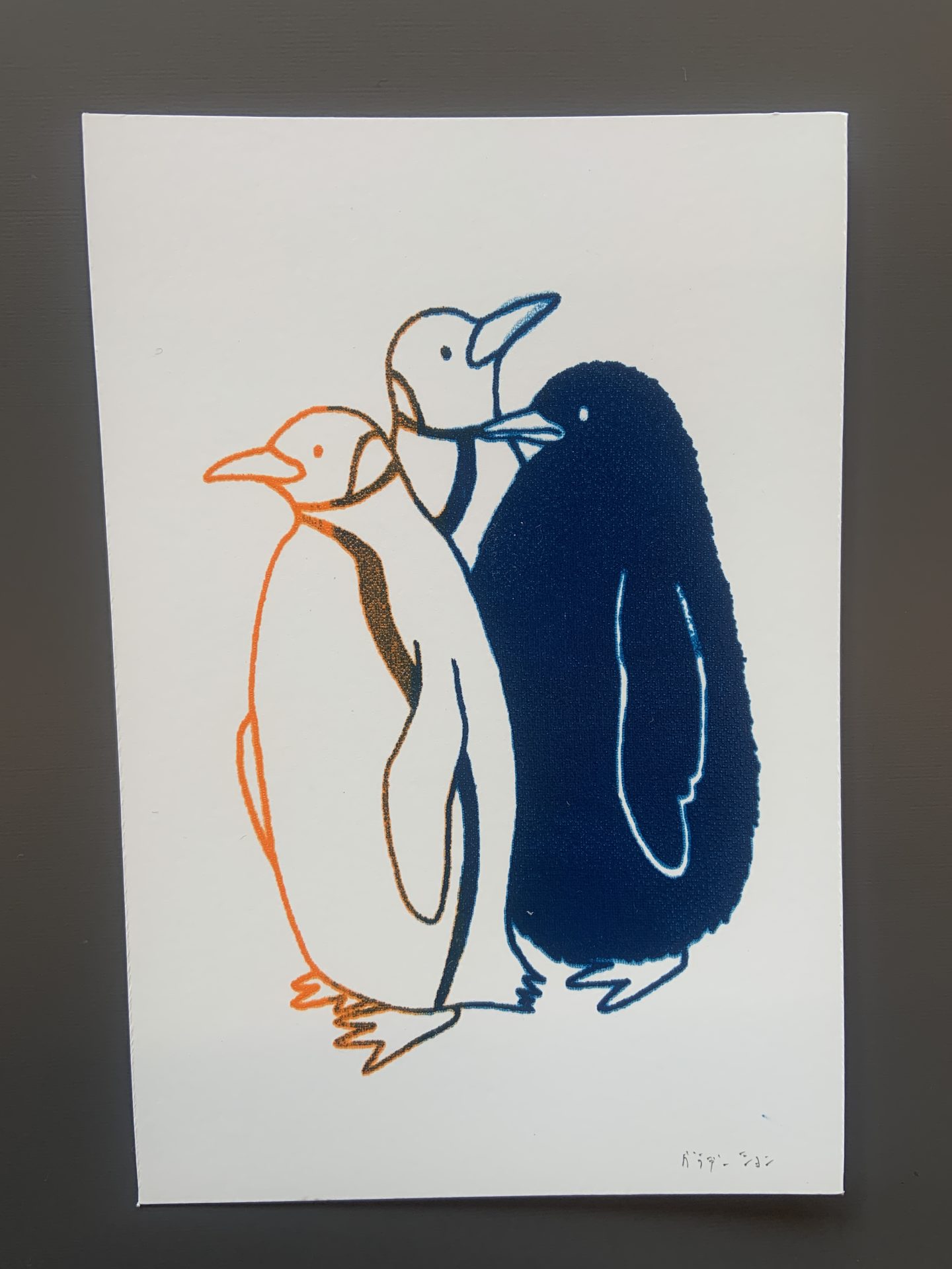 刷り終えてみると、右上のペンギンの頭部と真ん中のペンギンの口ばしが一部欠けてしまいました。
