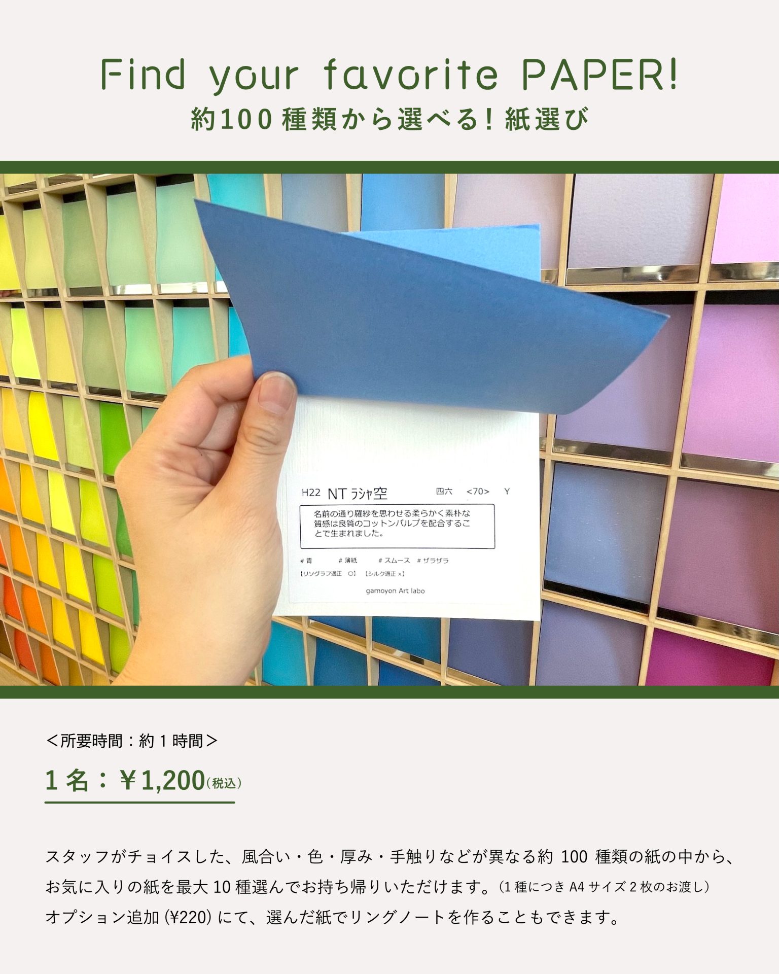 『約100種類から選べる!紙選び』 詳細(予約フォーム)