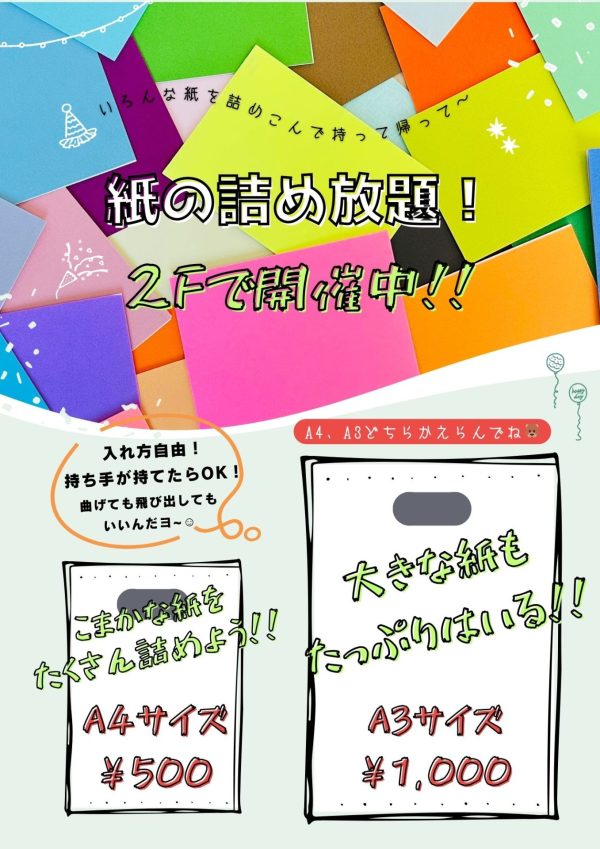 紙の詰め放題やシルクスクリーン体験も開催します😊